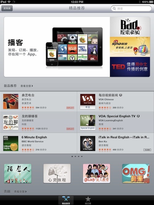 在最近 iOS 5.1.1 升级的时候,用户惊奇的发现 iTunes 应用里面,不再包含 Podcasts 这个类别,以往订阅的音频、视频播客都不翼而飞,随后苹果传来消息,要将 Podcasts 变为独立应用。