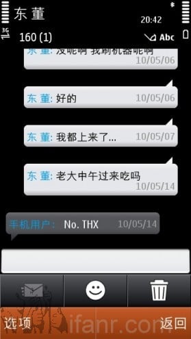 而面向触控的 Symbian^3 操作的一个重点就在于手指在什么地方(对象在什么地方),菜单就在什么地方(或者你也可以叫跟随式菜单?),减少手指移动的距离,通过手指触控对象的时间长短系统做出执行或弹出菜单的决定。从这个角度上来讲 Symbian^3 的改进是最为明显的,熟悉 iPhone 和 Andriod 的同学可以对比一下。