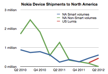 诺基亚 2012 第二财季的财报出炉,终于知道 Lumia 系列的出货量原来达到 400 万部。不过,诺基亚并没有进一步透露 Lumia 在美国和中国,这两世界上最重要的智能手机市场的出货情况。