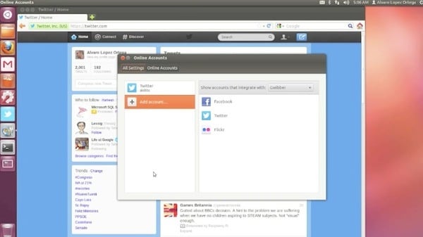 7. 结合社交网络的账号,是现在操作系统的流行做法。Mac OS X 10.8 以及 Windows 8 的分享功能开始变得强大。不过,新版 Ubuntu 的体验可能更加无缝。在设置好社交网络的账号之后,在图片上点击邮件甚至可以将文件直接上传到 Picasa 指定的相册中。