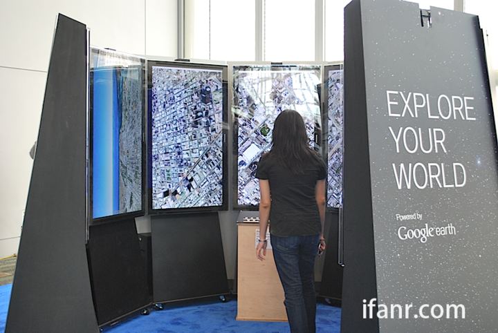 Google Earth 显示在八个巨型组合屏幕上,很震撼的感觉: