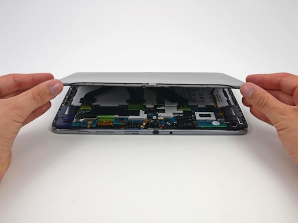 拆解显示屏需要小心翼翼,一些产品的 LCD 、触控屏与玻璃无法分离单独拆开,比如苹果的产品。不过,Galaxy Note 10.1 的 LCD 可以单独分离出来。同样,这为维修带来了方便。