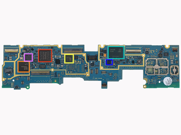 - 绿线框住部分是三星 LKMAG2GE4A NAND 闪存,符合 eMMC 标准,简化闪存的设计,集成一颗内存控制芯片;