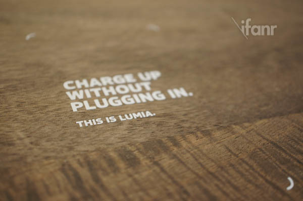 还有一个值得一提的设备是上手区的桌子,木板背面固定着多个 Qi 标准的无线充电器,Lumia 920 放进充电区就会开始充电。维珍航空、Coffee Bean & Tea Leaf 连锁咖啡点已经宣布与诺基亚合作,将在自己的桌内内嵌支持 Qi 无线充电标准的设备。