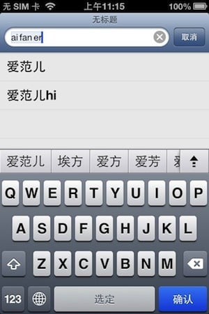 我还体验了一下苹果所提到的,在拼音输入的同时,还可输入英文单词的功能——但我发现这个功能还不完善。我输入“aifanerhi”,所得出的结果是“爱范儿hi”,但输入“aifanrerhere”后,结果是“爱范儿和热”,而且“爱范儿here”并未出现在输入法的候选项中。我还尝试了“aifanerit”和“aifanerthis”,都得不到理想中的结果。