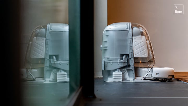 它的外观让我眼前一亮,这应该是第一个用透明设计的扫地机器人吧。