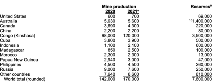 但根据美国官方公布的数据,美国本土的已探明钴矿储量只有 100 万吨左右,位于世界末位,且年产量极小。并且,美国本土没有一座能够具备电池级和航天级钴精炼能力的精炼厂。
