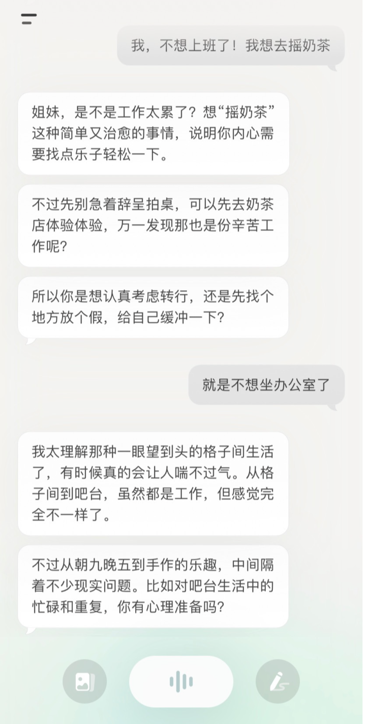 这或许指明了 AI 产品的一个新的进化方向:它既要能成为精准可靠的「高效知识引擎」,也要能成为理解你「28 岁焦虑」的「硅基伴侣」。