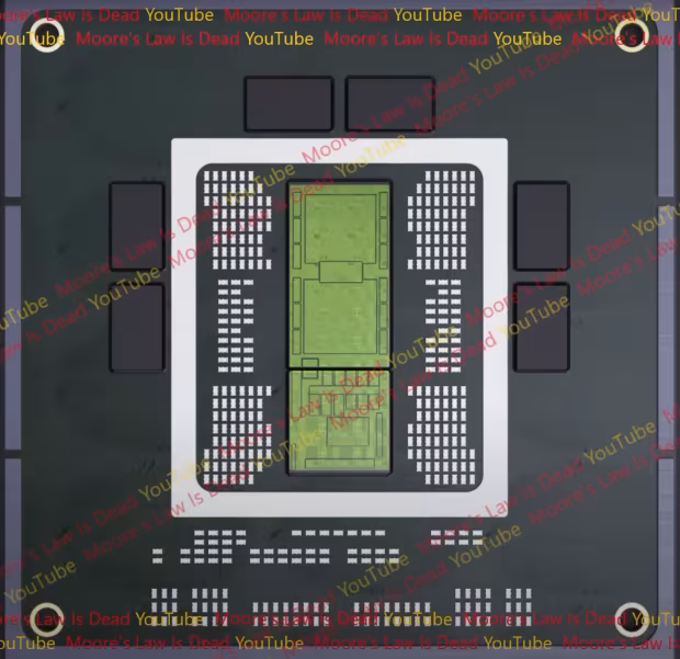 此外,该 APU 还内置一颗 NPU,支持两种功耗模式:在 6W 下可提供最高 110 TOPS 的算力,在 1.2W 下则为 46 TOPS,主要用于 AI 相关任务。整颗芯片面积约为 408mm²,预计功耗在 250W 至 350W 之间。