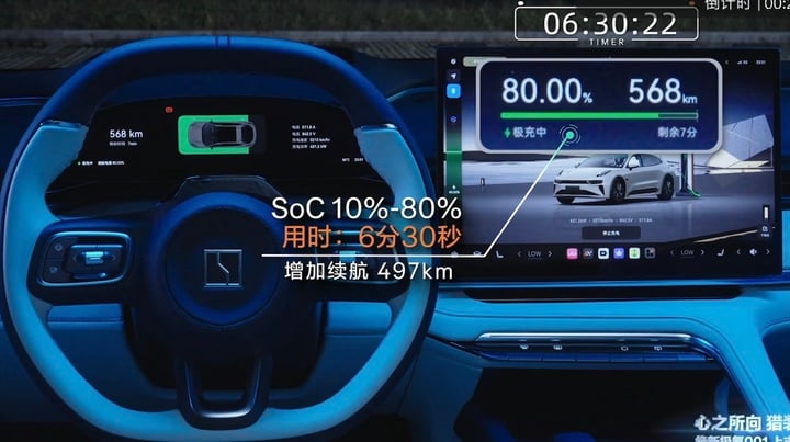 基于 900V 平台和最新的金砖电池技术,焕新极氪 001 的峰值充电倍率达到了 6C(后驱版)乃至 12C(四驱版)。反映到实际使用中,其 10%-80% 的充电时间被压缩到了 10 分钟以内,最快仅需 7 分钟,实测充满只要 14 分钟不到。