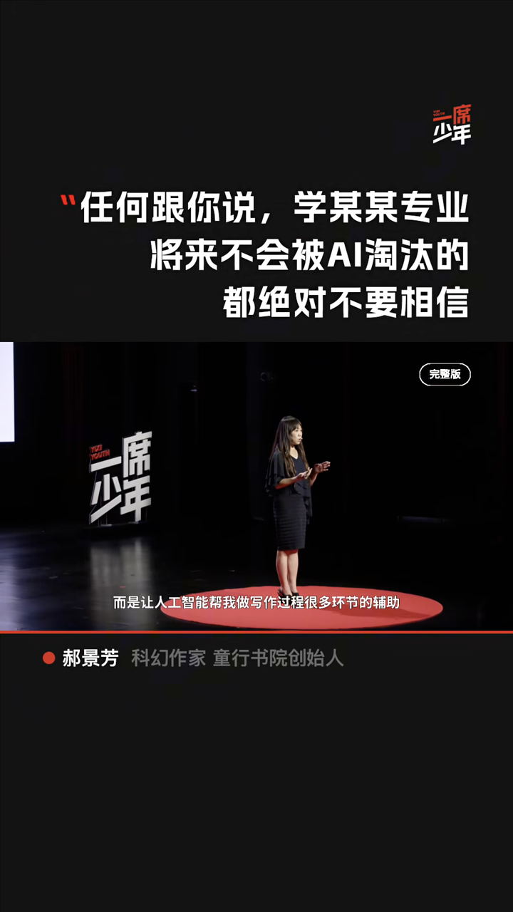 💡 科幻作家郝景芳:任何声称某专业不会被 AI 淘汰的说法都不可信