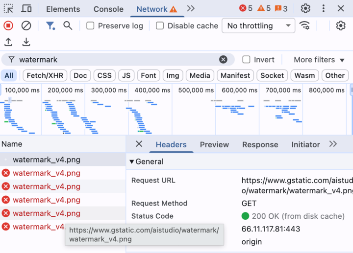 1、浏览器「F12」法: 使用 Google AI Studio。开启浏览器「开发者模式 (F12)」,点击「网络 (Network)」,在「过滤 (Filter)」中输入「watermark」。保持检查工具开启,正常生图,直到有 watermark 的链接出现,右键点击「阻止 (Block)」即可。后续生成均无水印。