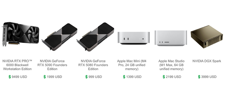 为什么会这样?这项测试是由大模型竞技场的团队 LMSYS,在他们的 SGLang 项目和 Ollama 上,选择上图中六个不同的设备,运行多个开源大语言模型完成的。