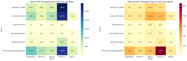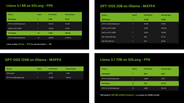 ▲ 每秒处理填充和解码的平均 token 数量,DGX Spark 排在 RTX 5080 后,图片由 ChatGPT 制作