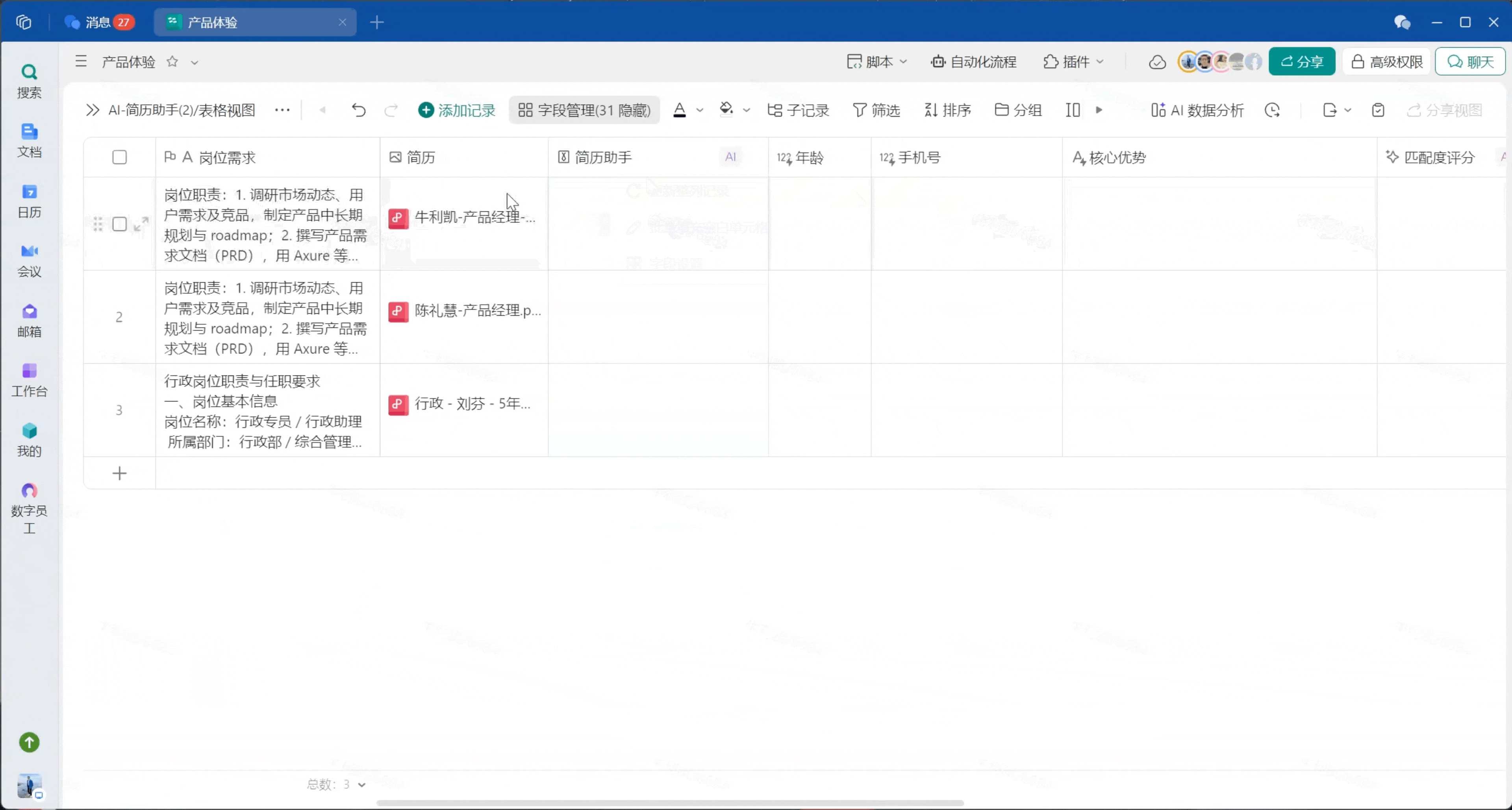 数据收集上来后,还需要专人对数据进行清理、提炼和分析,这个过程耗时长、易出错。WPS 多维表格的核心能力是「AI 数据处理」,它基于「AI 字段」的智能理解能力,能够将人工的判断也实现了智能化、自动化。