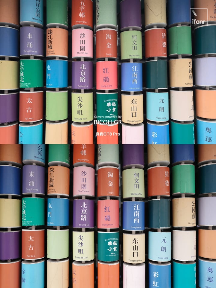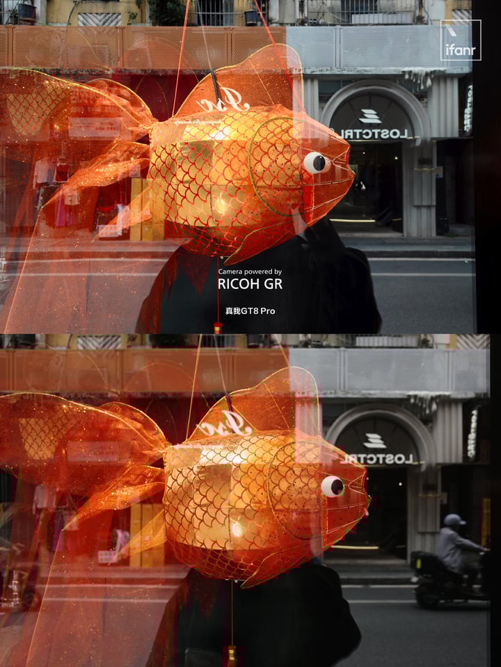 从对比来看,除了红色的亮度稍微低了一些,真我 GT8 Pro 与 GR4 的正片基本没有区别,颜色倾向、对比度和整体氛围都非常接近,可以说有九分相似。