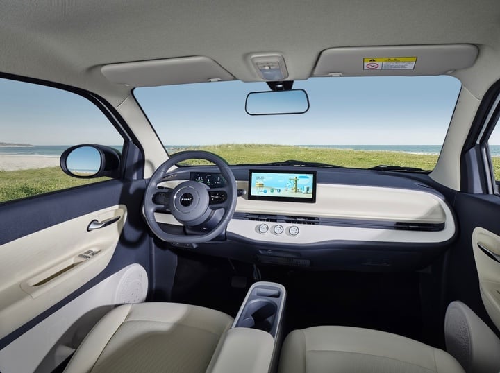 进入车内,A100C 提供了茉莉白、薄荷绿、西柚三种内饰配色,风格同样是主打清新、简洁。