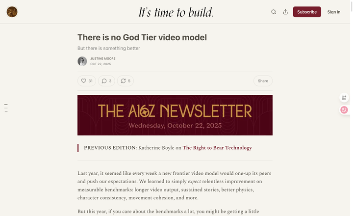 A16Z:AI 视频模型不会一家独大,产品层才是最大机会