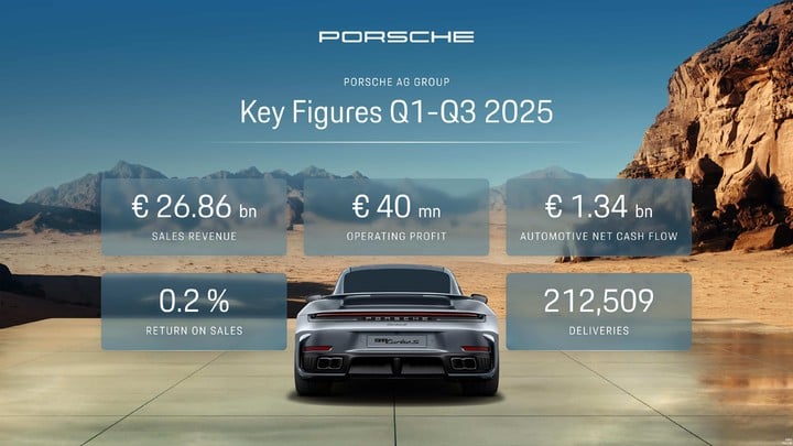 据央视财经报道,德国大众集团旗下保时捷汽车公司昨日公布最新财报显示,公司第三季度亏损达 9.66 亿欧元(约合人民币 80 亿元),导致今年前三季度销售利润同比大幅下滑 99%。