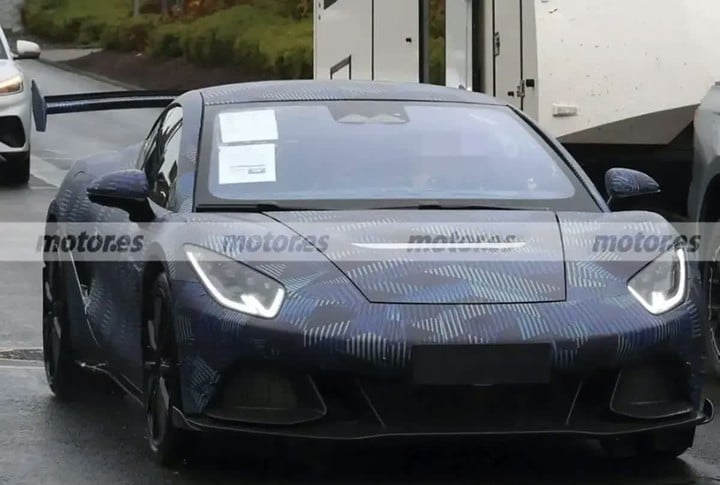 报道指出,新车前脸搭载双「L」与「V」形 LED 灯条,车头由三个大型进气口主导,两侧设有导流槽,下唇延伸扰流板增强下压力。宽大轮拱上布置三个散热口,覆盖巨型刹车盘,并由大型卡钳夹持。