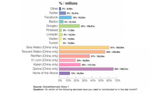GlobalWebIndex 的创始人Tom Smith 表示,此类在中国被屏蔽的网站可以通过代理服务器(Proxy services)访问,让用户通过境外的服务器来防止过滤。这种方式使得 Facebook 和 Twitter 可以和中国本土的社交网站相竞争。