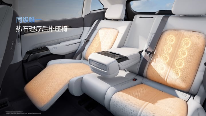 老款车型上广受好评的后排老板座椅和可前后移动的滑轨得到了保留,并升级了石墨烯加热功能,支持热石理疗功能。后排还集成了电动躺椅、电动腿托、电动遮阳帘、电动桌板、后排电动智慧屏、后排中央扶手 6 英寸点触智慧屏等配置,乘坐体验媲美豪华 MPV。