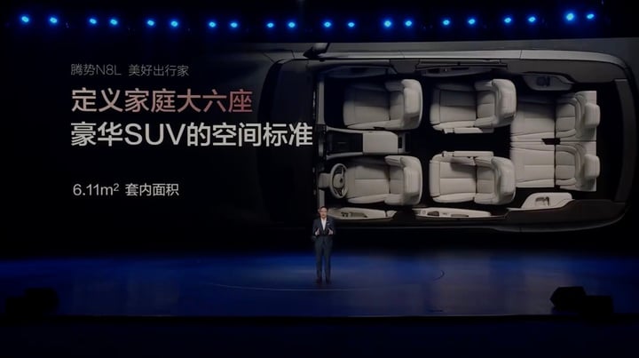 腾势 N8L 的产品定义是「大六座安全豪华 SUV」,它在核心技术上与旗舰 N9 高度一致,基本是把 N9 的整套技术家底,下放到了一个价格更低的车型上。
