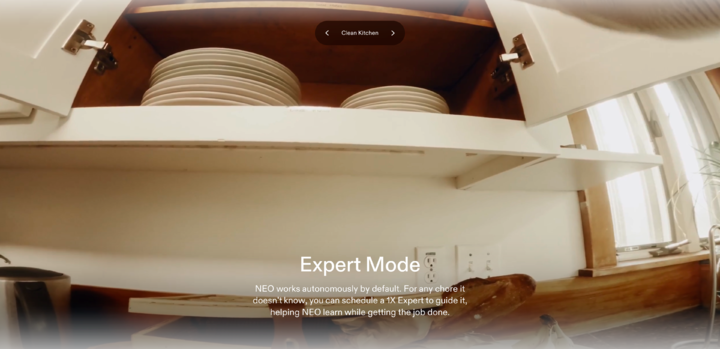 1X 坦诚,Neo 在交付时只能处理一些基本任务。当它遇到一个它不知道如何处理的复杂任务时,比如操作家里某个型号独特的洗衣机,它会怎么办?