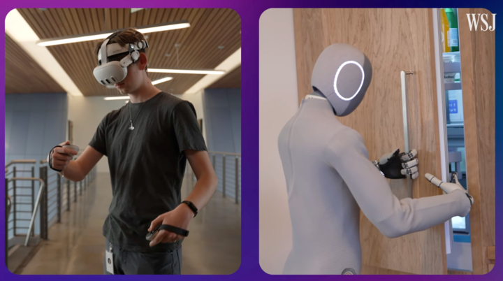 ▲ Neo 的两个眼镜会变成远程操作员的摄像头,远程操作员给 Neo 下指令如何操作