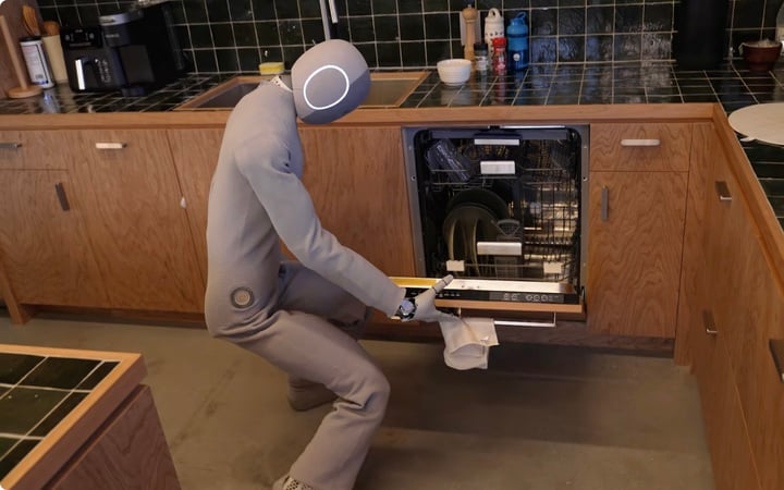 好处是,Neo 可以「边做边学」。机器人在观察人类操作员完成后,会学习这项技能,以便未来自主完成。