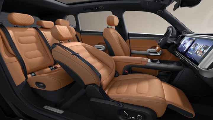 车内则采用环抱式座舱布局 + 双层中央岛台的设计,配备 10.3 英寸全液晶仪表盘以及双 13 英寸的 AMOLED 超清 2.5K 联屏,采用的是 AMD V2000 桌面级芯片,并配备了 15.6 英寸的 AR-HUD。