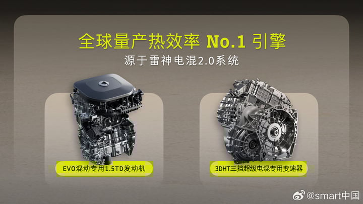 smart 倒也没藏着掖着,直言新车上搭载的正是吉利雷神电混 2.0,与沃尔沃 XC70 上的那套同源。