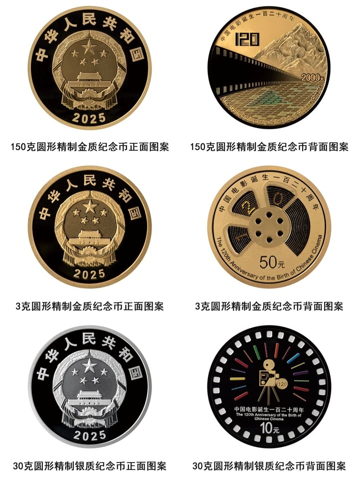 据中国人民银行消息,其定于 2025 年 11 月 11 日发行中国电影诞生 120 周年金银纪念币一套。该套金银纪念币共 3 枚,其中金质纪念币 2 枚,银质纪念币 1 枚,均为中华人民共和国法定货币。