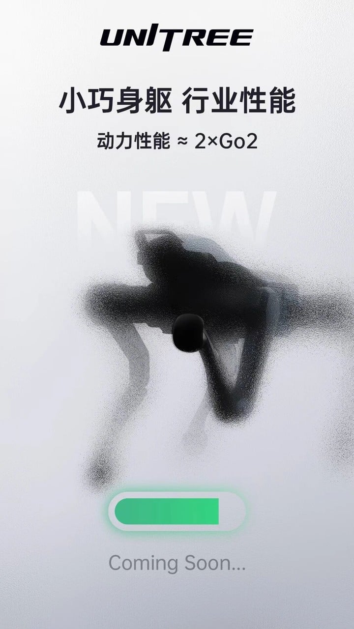 据公布的海报来看,新款机器人可能为 Go 系列四足机器人。官方还表示,新款机器人将拥有小巧身躯以及行业性能,并给出了「动力性能≈2 个 Go 2」。