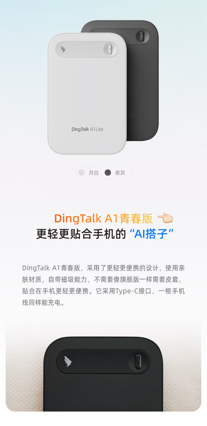 499 元,钉钉发布首款 AI 录音卡片 DingTalk A1 青春版