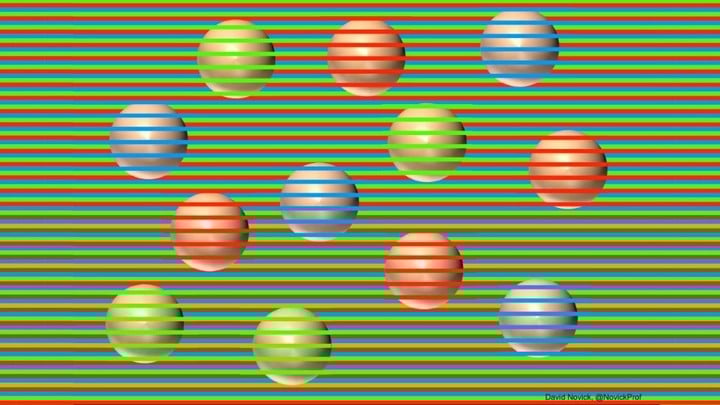 ▲ Munker–White 错觉,小球的颜色被条纹重新定义了