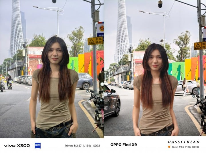而面对阴天灰蒙蒙的人像场景,OPPO Find X9 的色彩表现要相对更舒服,并且虚化也很到位,相比较下 vivo X300 则更以光感还原为主。
