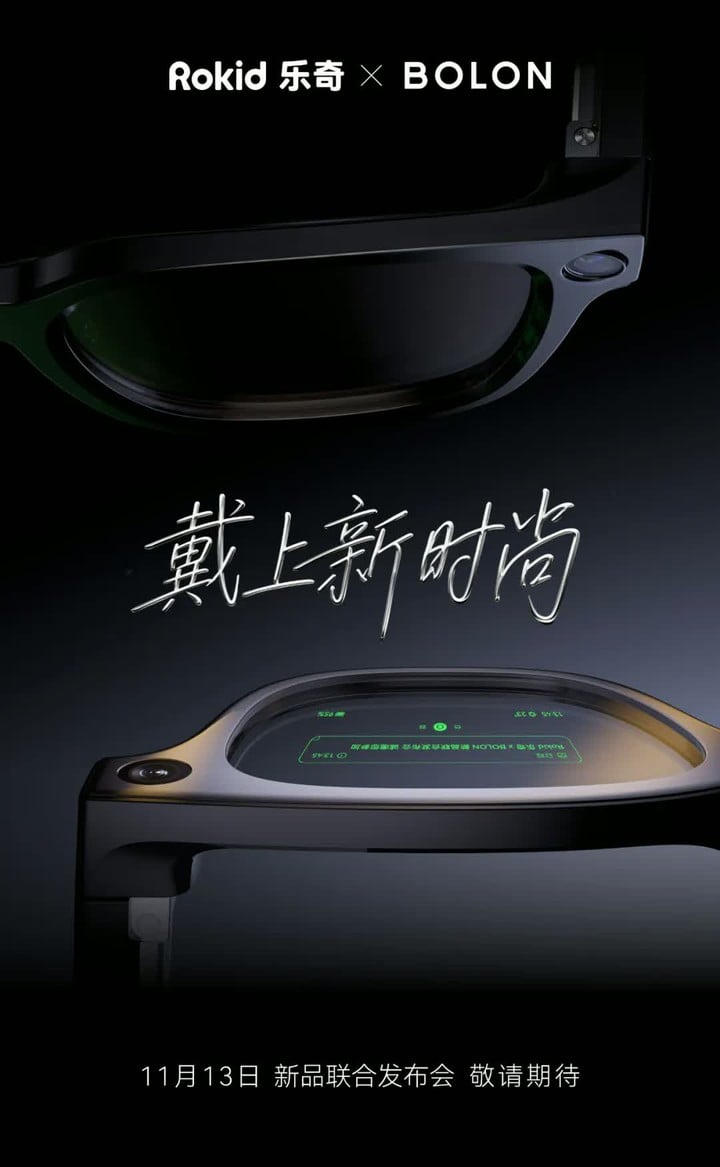 昨天,Rokid 乐奇在官方微信公众号发文,官宣将于 11 月 13 日联合 BOLON 眼镜在浙江举办主题为「戴上新时尚」的新品发布会,推出新一代 BOLON 智能眼镜,主打 AI 功能与时尚设计的深度融合。