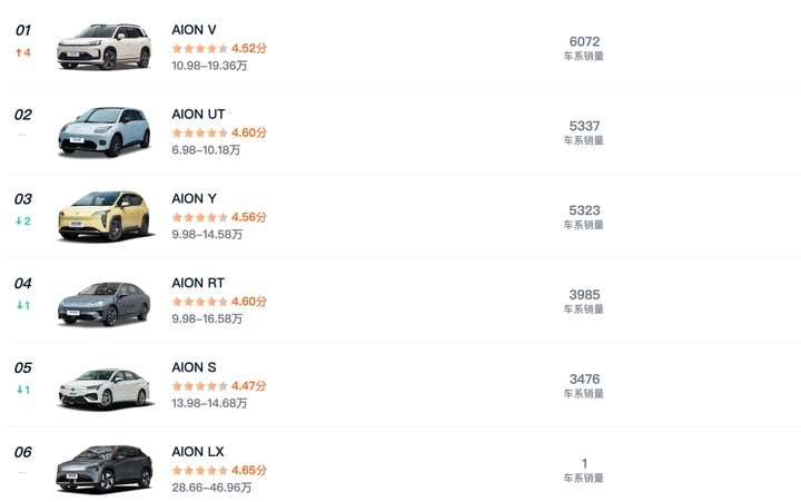 9 月份,整个埃安品牌一共售出了 2.4 万辆车,表现最好的是埃安 V 霸王龙纯电的 6072 辆。