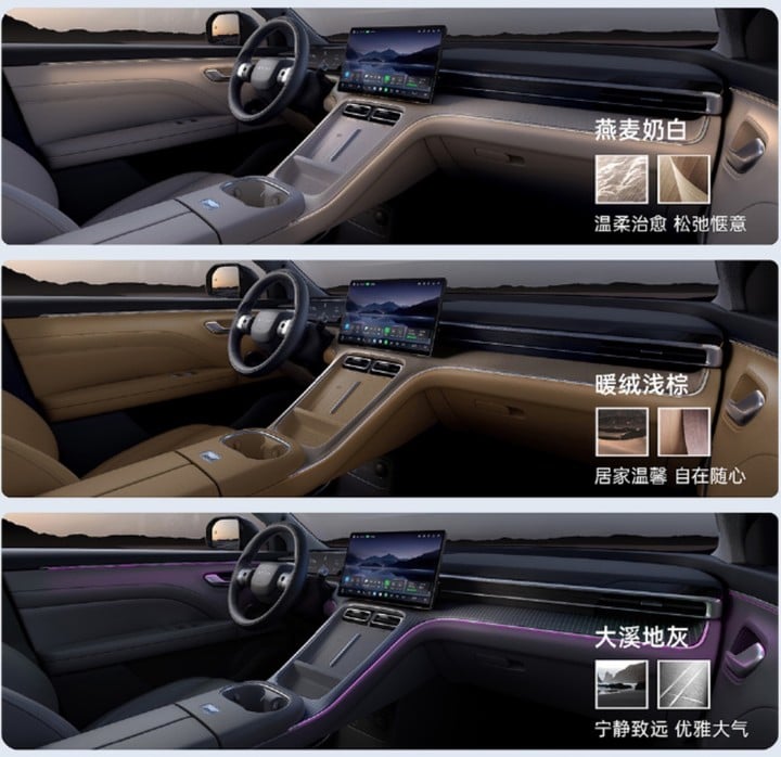 车内,埃安 i60 延续了家族式的简约设计,中控搭载矩形全液晶仪表和大尺寸悬浮式中控屏的组合,采用怀档和贯穿式空调出风口布局,有奶白、浅棕和大溪地灰三种内饰颜色可选。
