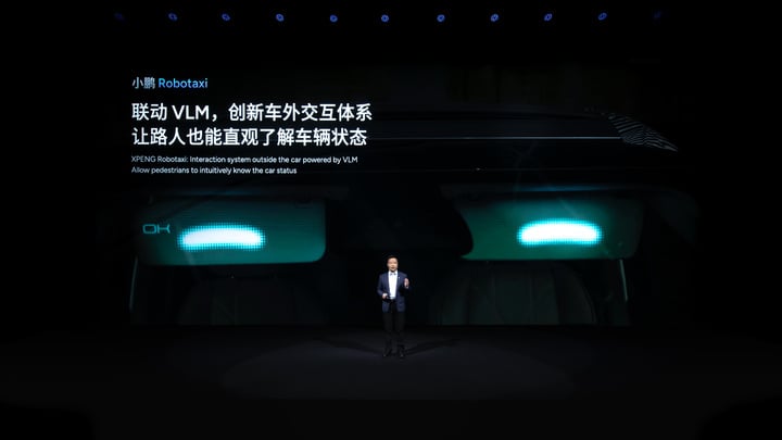 小鹏创新性地在 Robotaxi 的遮阳板中集成柔性显示屏,可显示「正在等待」「请通行」等可视化信息,帮助行人理解车辆意图;未来他们计划结合定向车外语音,形成视觉+听觉的多维交互界面,增强人车互信。