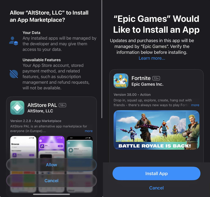 日前,苹果向开发者推送了 iOS 26.2 的首个 beta 版本,博主 @Tzzlala 昨天在 X 上发帖称,日本用户已可在运行 iOS 26.2 的 iPhone 上安装替代应用程式商店,包括 AltStore PAL 与 Epic Games Store。