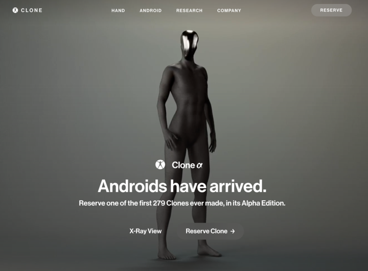 说起来,IRON 这种全身包覆柔性皮肤、高度仿生的外观设计,跟波兰公司 Clone Robotics 在 2 月 21 日发布的 Protoclone V1 颇有几分神似。
