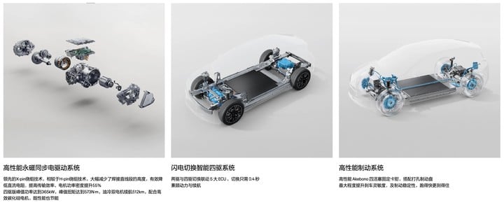 动力系统维持高性能取向。全系采用第三代 8-Hairpin 技术的永磁同步电驱系统,Ultra 五座版系统综合峰值功率达 365 千瓦,峰值扭矩 573 牛·米。百公里加速时间为 3.69 秒,官方称其为「20 万元内加速最快的 SUV」。