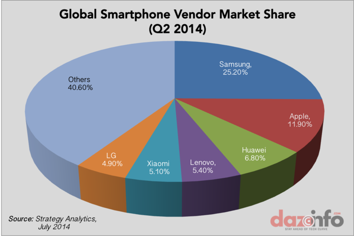 只不过,这 4000 万台 Xperia 不是索移走向巅峰的开始,而是出道即巅峰。更何况,放眼当时的全球智能手机市场,这也是个微不足道的数字——2014 年,索尼的全球手机市场占比仅为 2%,别说跟当时正在全球市场攻城略地的小米华为比,这个销量连当时 LG 手机的一半都达不到。