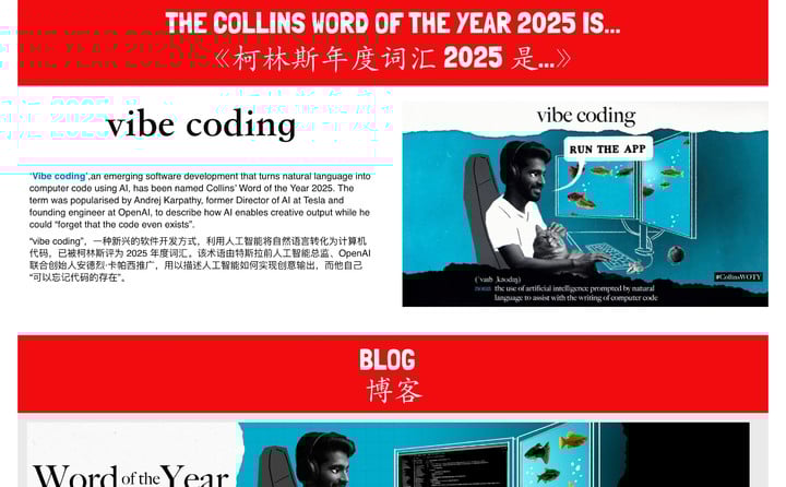 此次公布还伴随其他候选词的入围,但「vibe coding」最终脱颖而出,成为年度语言现象的代表。