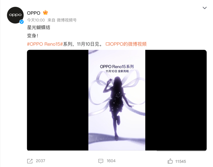 昨天,OPPO 官宣 Reno 15 系列将于 11 月 10 日正式发布,预计包括 Reno 15、Reno 15 Pro 与 Reno 15 Pro Max 三款机型。