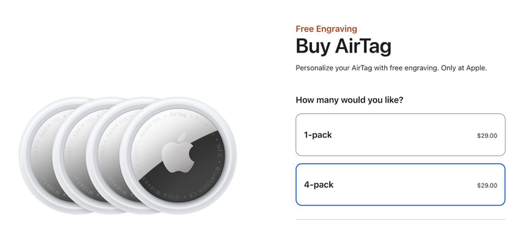 据 MacRumors 报道,昨天苹果美国官网出现定价错误,AirTag 四枚装售价仅为 29 美元(约 206 元人民币),与单枚 AirTag 价格相同。该异常迅速引发大量用户下单,导致预计交付时间推迟至 11 月下旬至 12 月初。