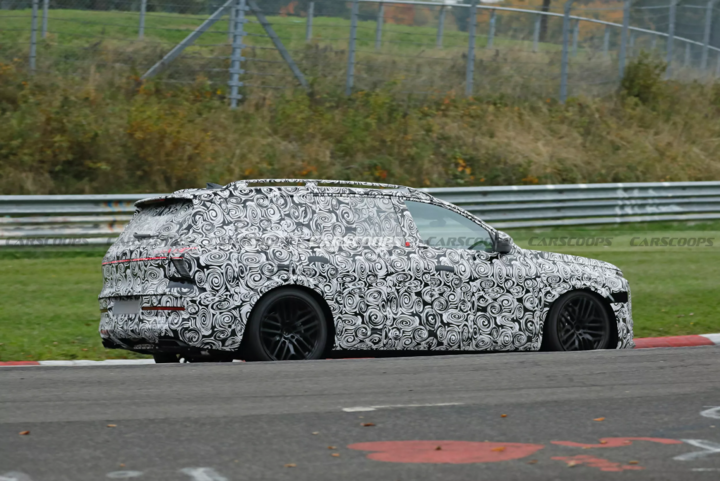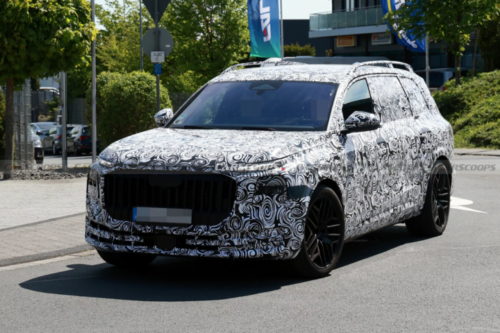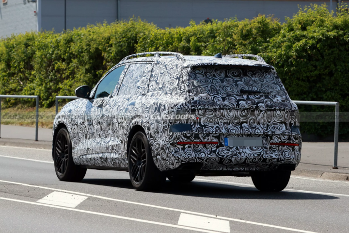 根据外媒拍到的谍照观察,奥迪 Q9 的测试车轴距较现款 Q7 延长约 120–150mm,预计将达到 3100–3150mm,整车长度有望突破 5.2 米,与宝马 X7(5181mm)和奔驰 GLS(5219mm)正面看齐。