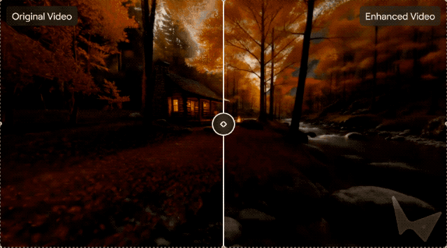 ▲增强后的视频能够清除画面瑕疵,并为场景加入动态效果。注意烟囱上方的烟雾、跳动的火焰,以及流动的水面。